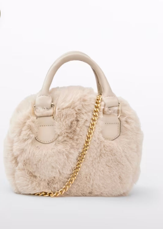 Beige Faux Shearling Bag/Abel & Lula